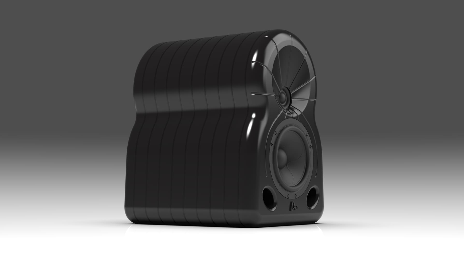 - Active 2-way monitor with multi-layered body construction. Nonplanar, sine based internal surfaces. Thorough bracing.