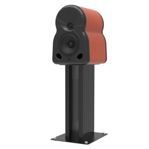 Hand painted MDF stand with metal top/bottom plates. Decoupling feet and rubber speaker contacts.